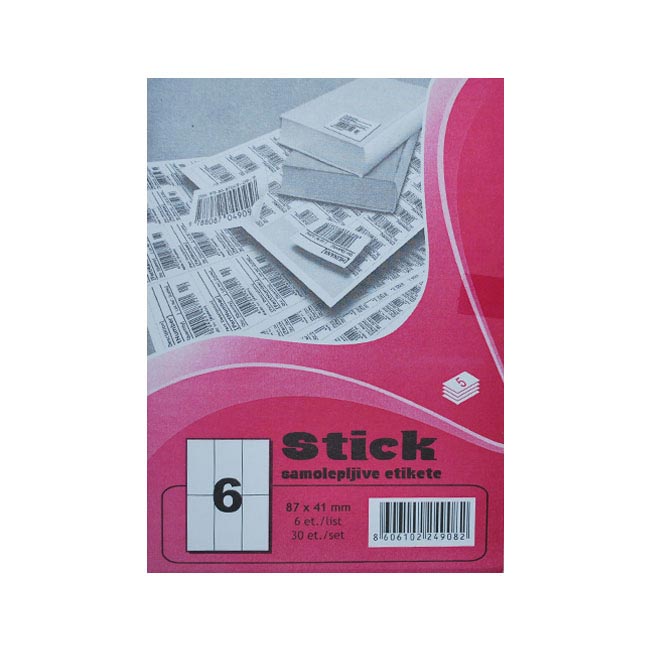 Naziv proizvoda: Samolepljive Etikete br.06 – 87×41 mm, Pakovanje od 5 listova