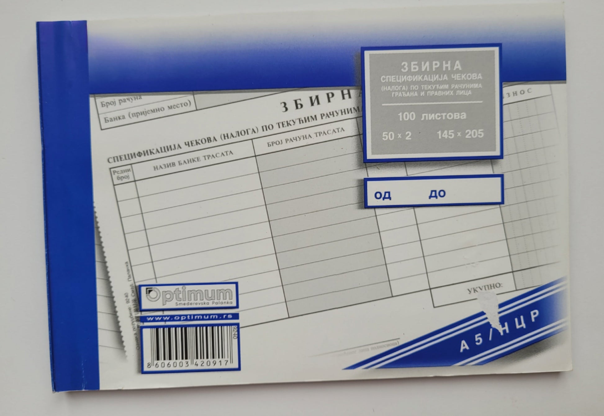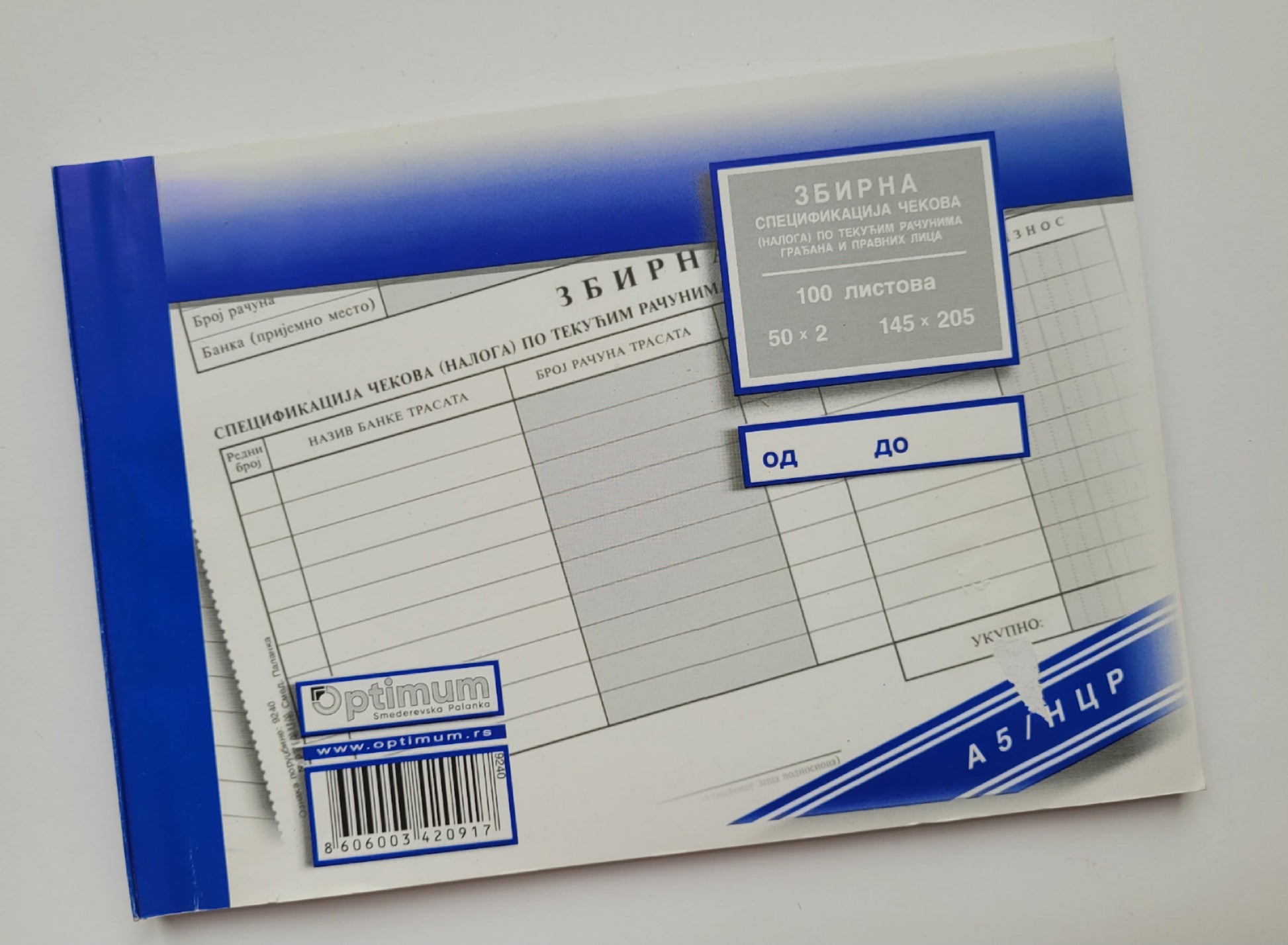 Zbirna specifikacija čekova A/5